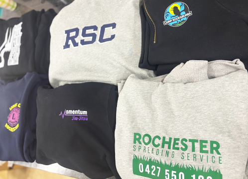 We have a large range of blank to choose from AS COLOUR, RAM, JB"S WEAR. We our printiers we can print onto jumper, hoddies workwear anything inhouse at Bamawm.